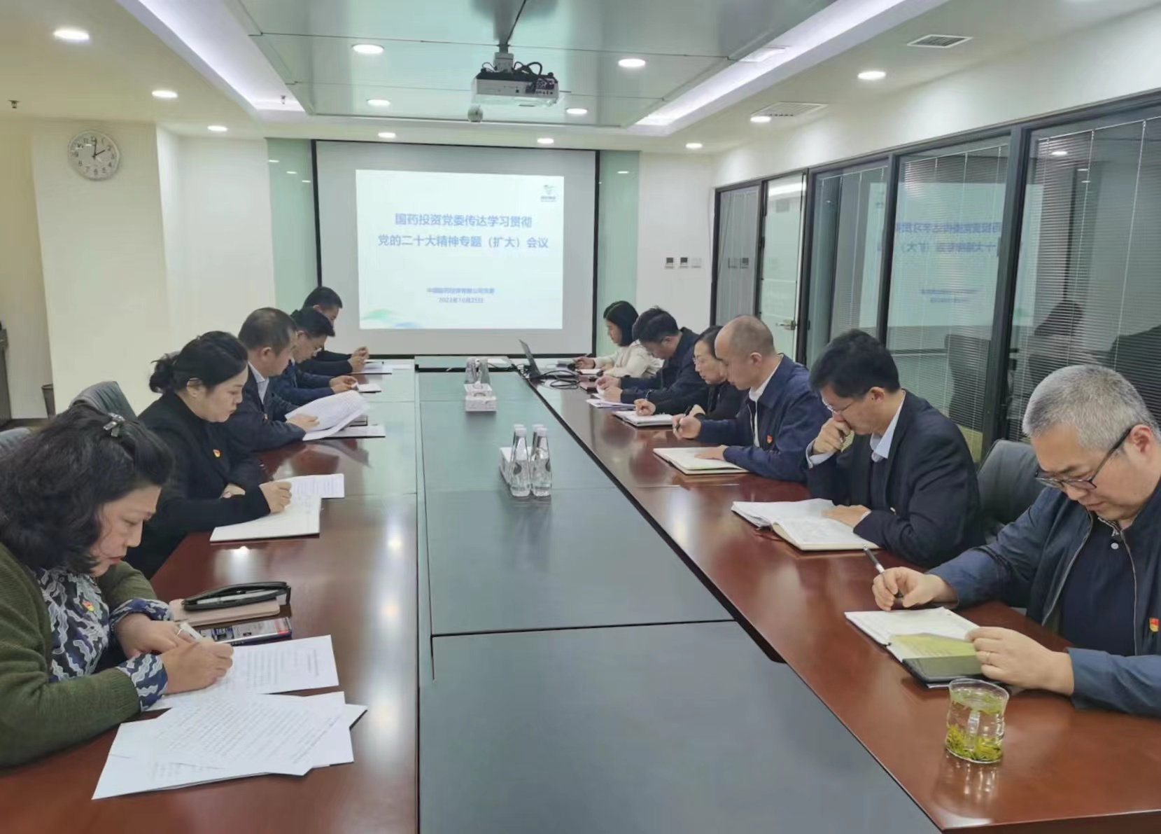 10 月 25 日,國藥投資黨委書記、總經(jīng)理梁紅軍主持召開公司黨委(擴(kuò)大)會(huì),專題傳達(dá)學(xué)習(xí)黨的二十大精神,認(rèn)真學(xué)習(xí)貫徹國藥集團(tuán)黨委(擴(kuò)大)會(huì)部署要求,對公司學(xué)習(xí)宣傳貫徹黨的二十大精神進(jìn)行動(dòng)員部署。公司領(lǐng)導(dǎo)班子成員,黨支部書記、各部門負(fù)責(zé)人、團(tuán)委書記參加會(huì)議。