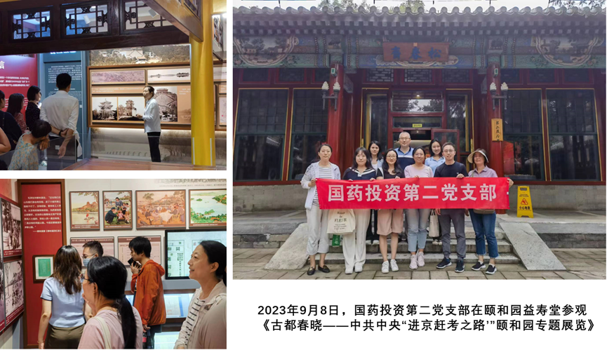 2023 年 9 月至 11 月,國藥投資第二黨支部組織開展 “重走進京趕考路,不忘初心建新功” 系列主題黨日活動,支部覆蓋部門的黨員群眾先后走進清華園車站、頤和園益壽堂、香山雙清別墅,重走 74 年前中共中央 “進京趕考之路”,重溫中國共產(chǎn)黨的光輝歷史,感受紅色力量。