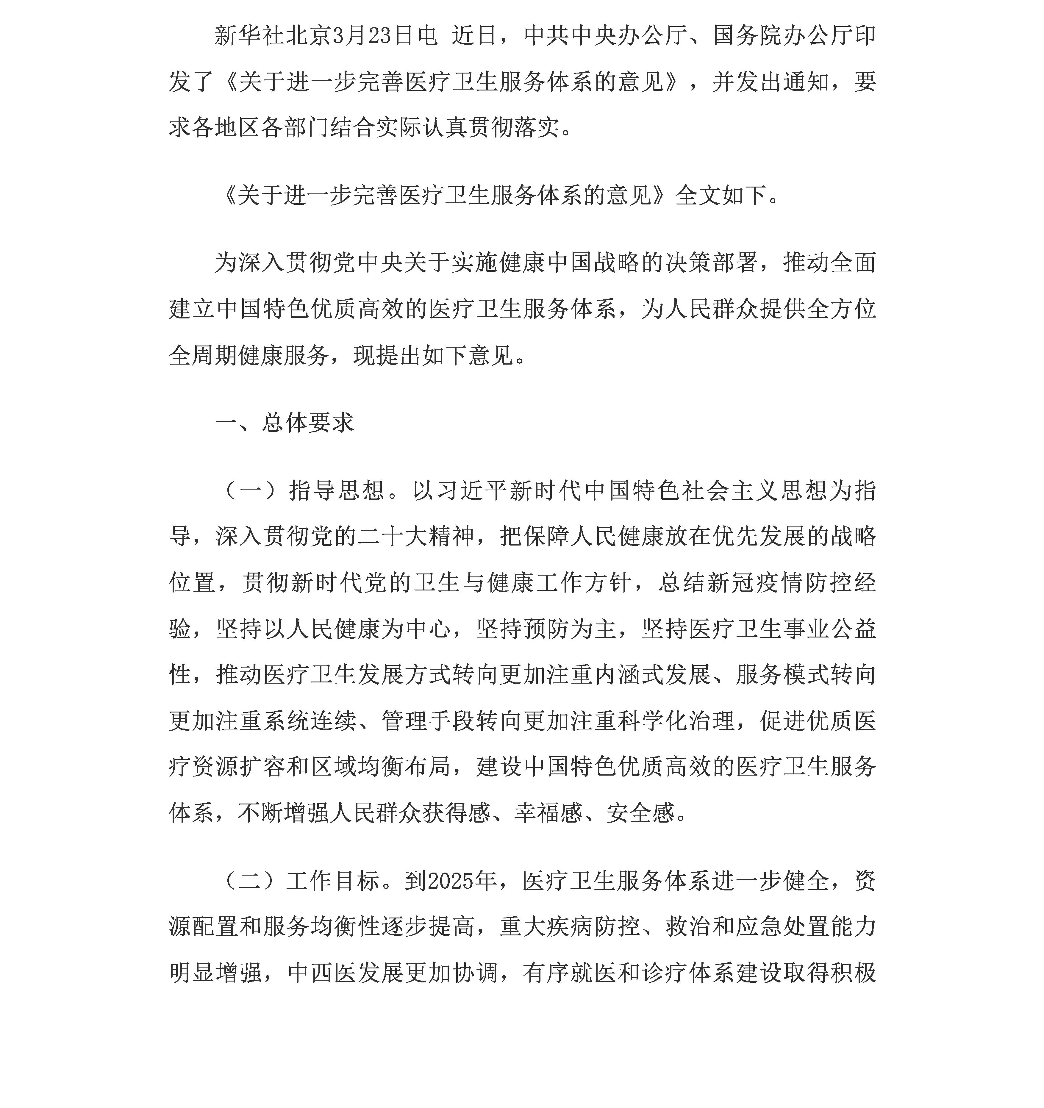 中共中央辦公廳 國務(wù)院辦公廳印發(fā)《關(guān)于進一步完善醫(yī)療衛(wèi)生服務(wù)體系的意見》