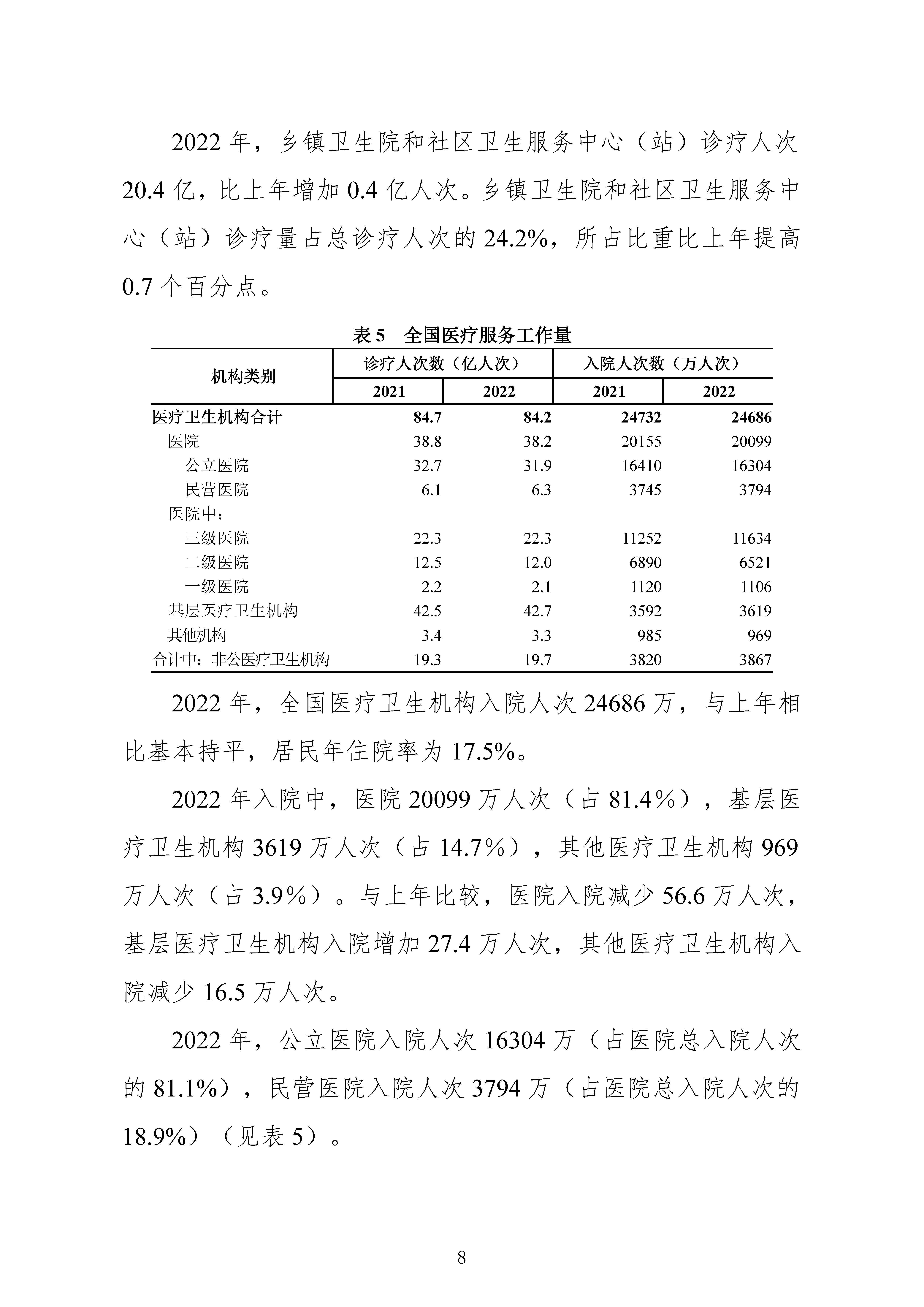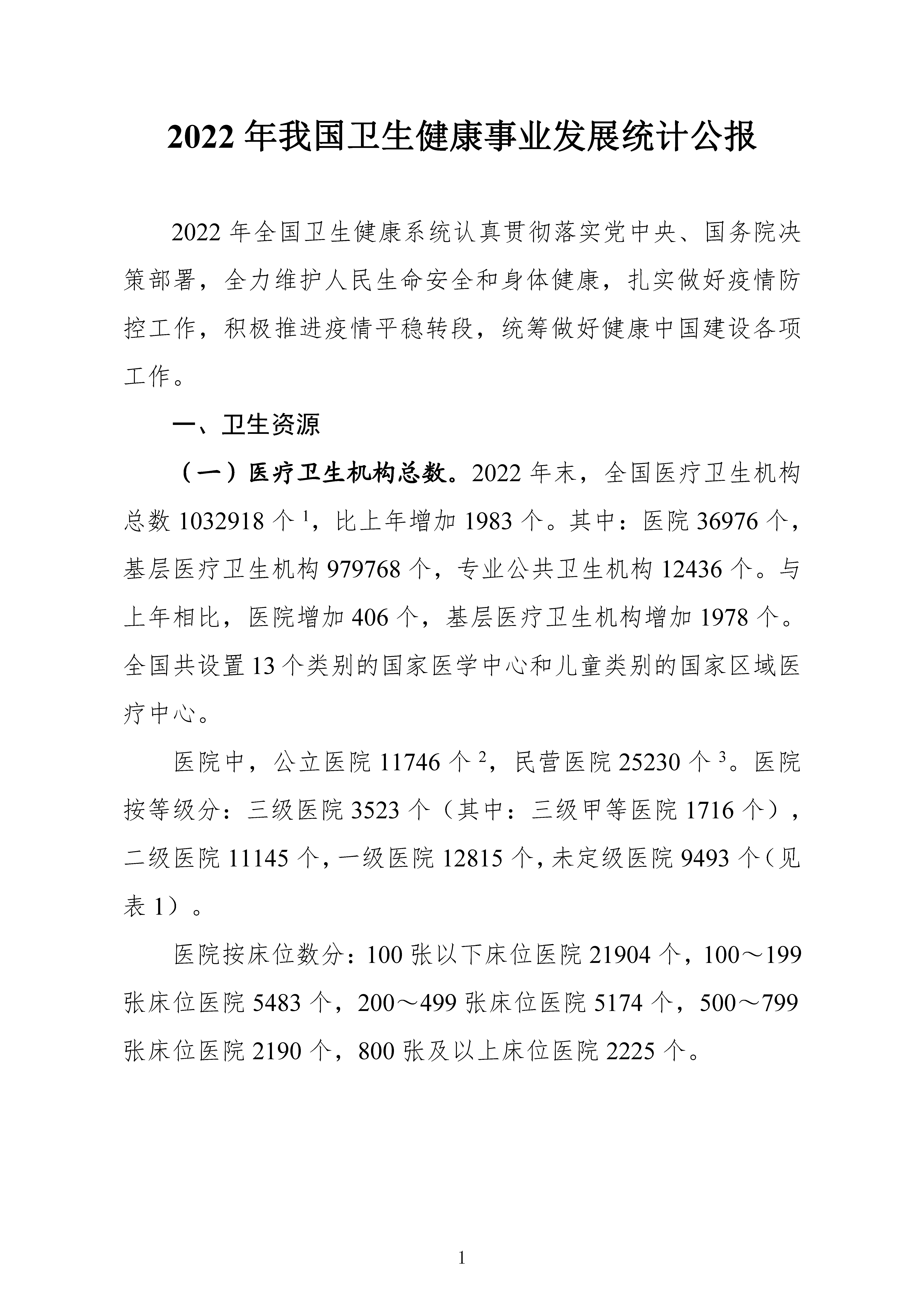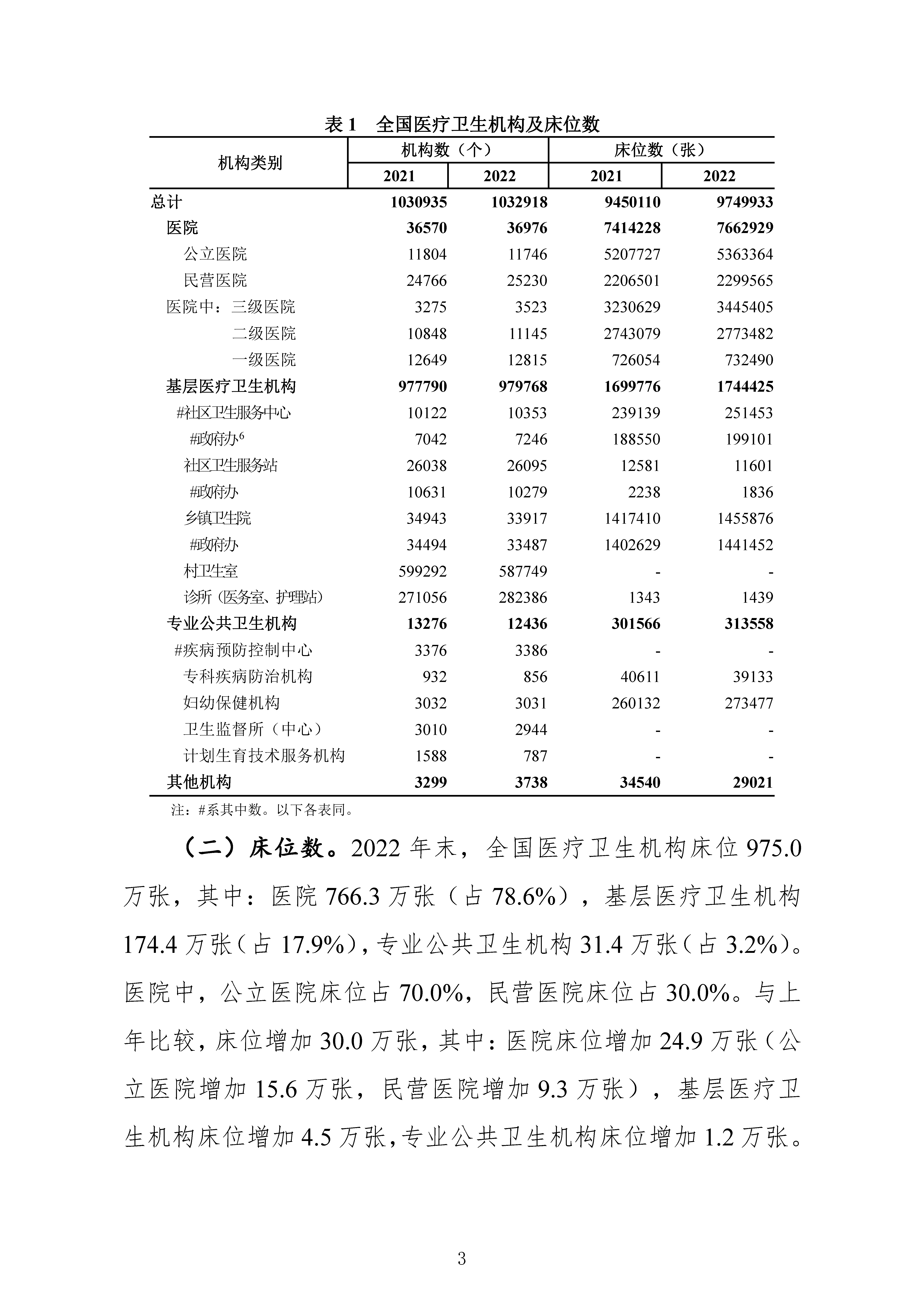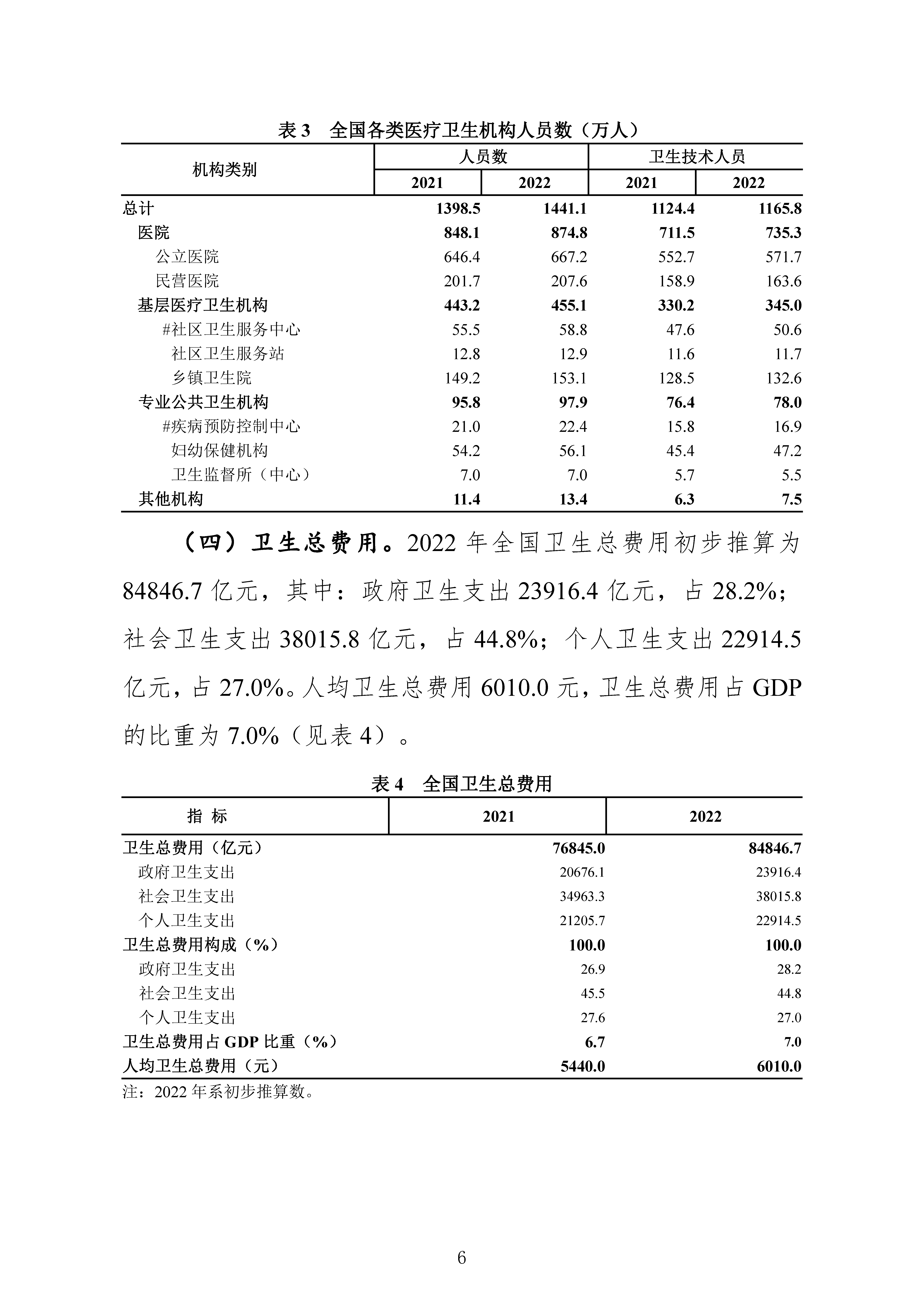 2022 年衛(wèi)生健康事業(yè)發(fā)展統(tǒng)計(jì)公報(bào)發(fā)布
