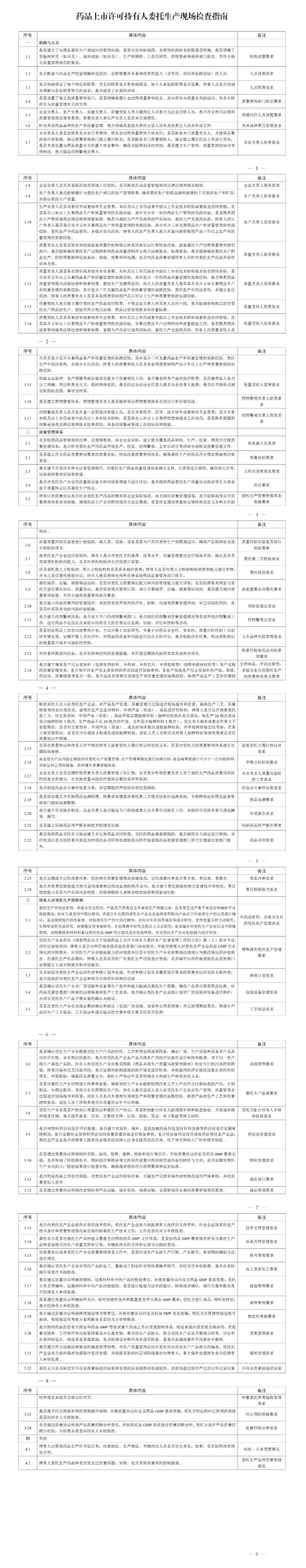 為強(qiáng)化藥品上市許可持有人委托生產(chǎn)的監(jiān)督管理,國家藥監(jiān)局組織制定了《藥品上市許可持有人委托生產(chǎn)現(xiàn)場檢查指南》,現(xiàn)予印發(fā),自發(fā)布之日起實(shí)施。